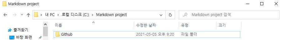 Markdown project의 폴더에 GitHub의 폴더가 생성되어 Github의 레파지스토리의 소스가 전부 복사된 것을 확인 할 수 있다.