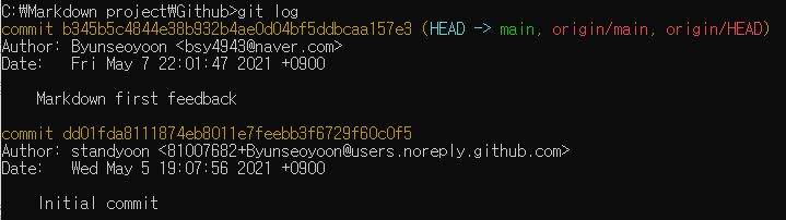 업로드한 feedback.txt파일을 업로드에서 지우고 직접 피드백내용을 수정해서 md 파일로 올리기로 결정하여, 파일을 지우기 위해 commit한 히스토리를 알기 위해 log 명령어를 사용했다.