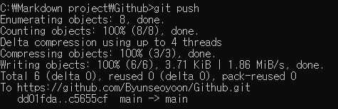 깃헙의 레파지스토리에도 이 것을 적용하기 위해서 push를 이용한다.