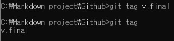 zip파일을 레파지스토리에 적용한 이후 head가 zip파일의 커밋을 가리키고 있는 상태에서, 이 파일이 최종 버전이라고 태그를 달기 위해서 tag 명령어를 사용하였다.