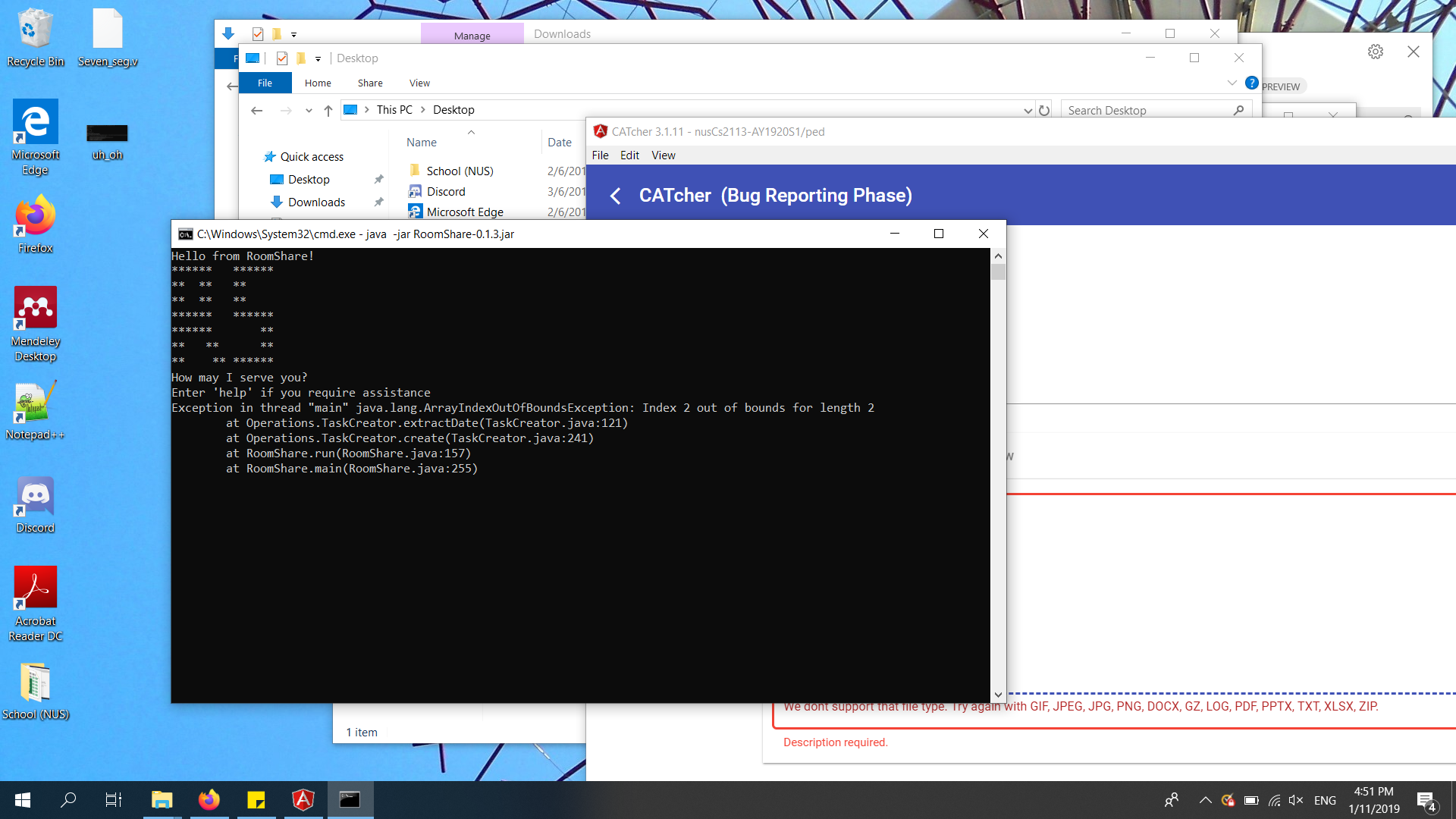 OUt of bounds exception is not handled