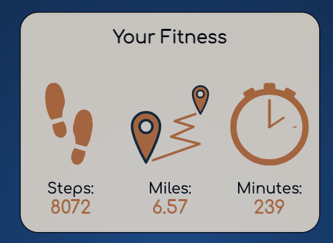 Our user data is hosted locally within the project files. There are fifty sample users that span roughly 3 months of daily data across multiple categories. Data is made up of activity, hydration, and sleep information. Each category is displayed on the webpage in a corresponding dashboard. All data visualizations are constructed using d3.js. The site is optimized for small mobile, large mobile, tablet, and laptop devices.