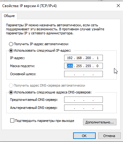 Допустим, все виртуальные машины у нас будут в подсети 192.168.200.0, а шлюз у них будет 192.168.200.1, для этого этот айпи укажем у адаптера для virtmachines