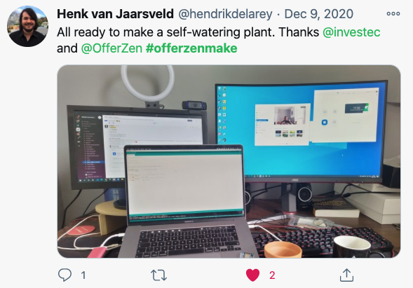 I'm setup and ready to go for my #offerzenmake event with @offerzen!. - Upload a photo of your setup and the message above to LinkedIn.