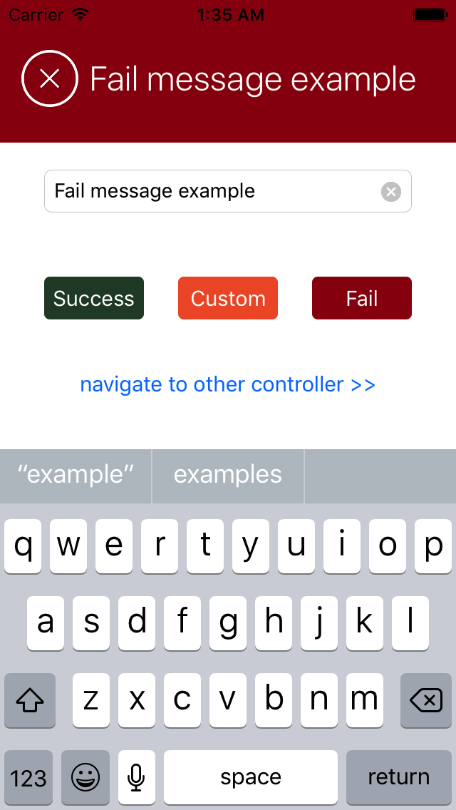 With default layouts for success and fail feedbacks and also supports creating customizables layouts (icon, message and colors).