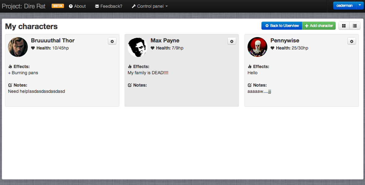 DnD manager built with CodeIgniter and styled with Bootstrap