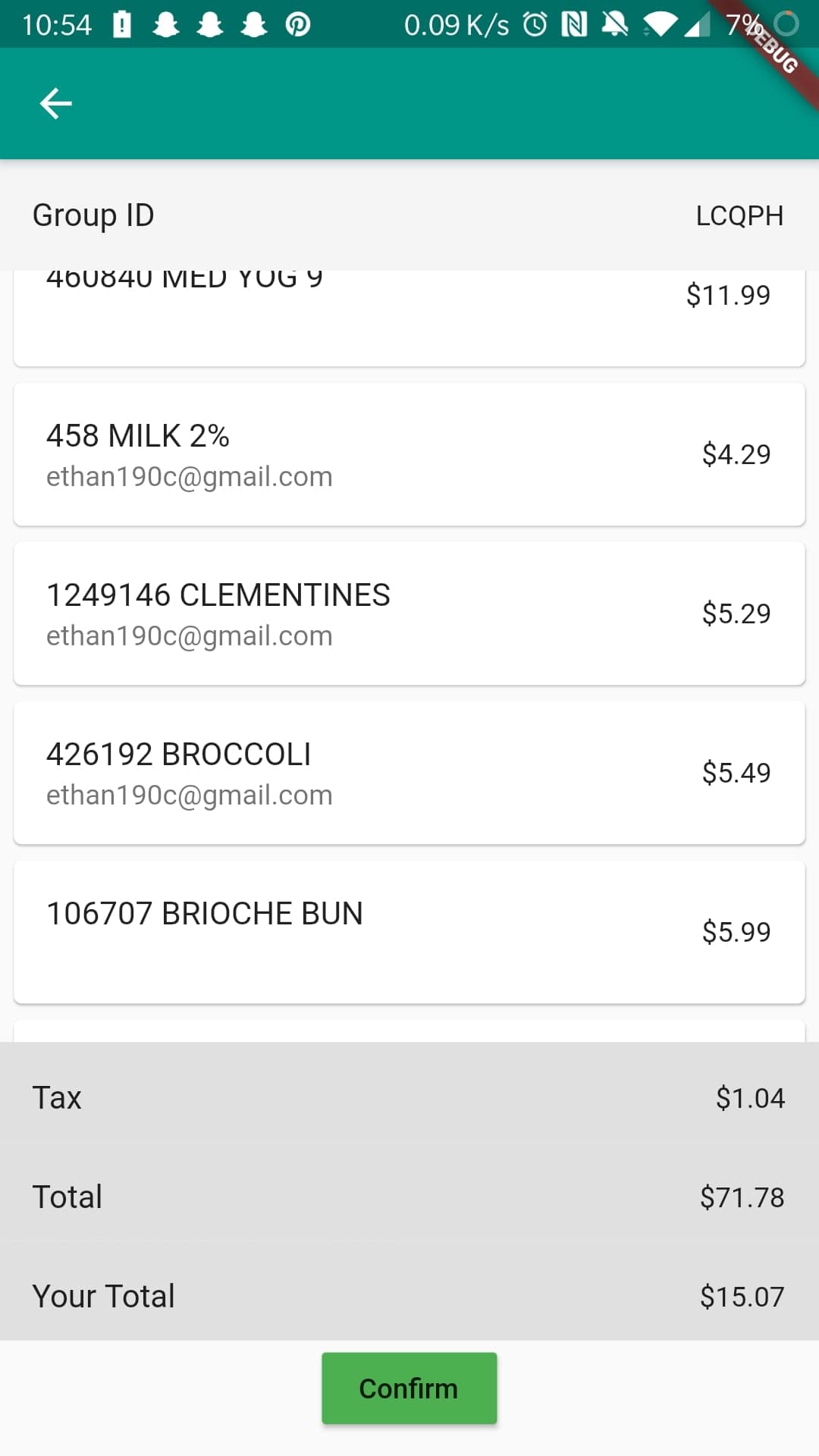 - Users can choose what items they want to "claim" and their own total will be displayed at the bottom (including the split tax)
