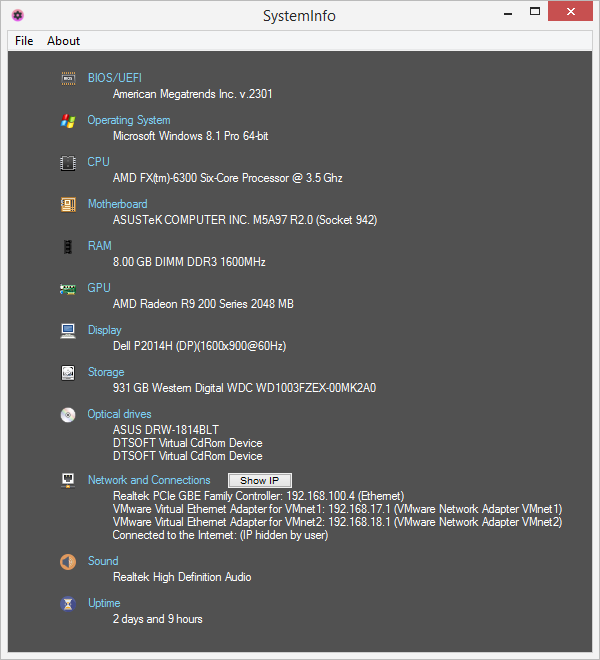 The program is written in C/C++ and uses barebones WindowsAPI for its GUI.