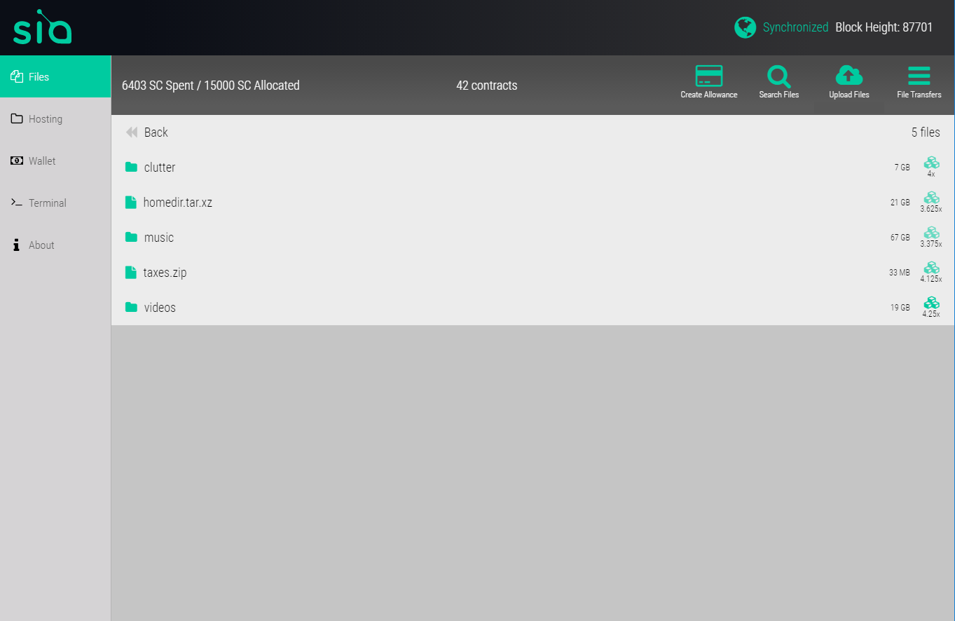 Sia is ready for use with small sums of money and non-critical files, but until the network has a more proven track record, we advise against using it as a sole means of storing important data.