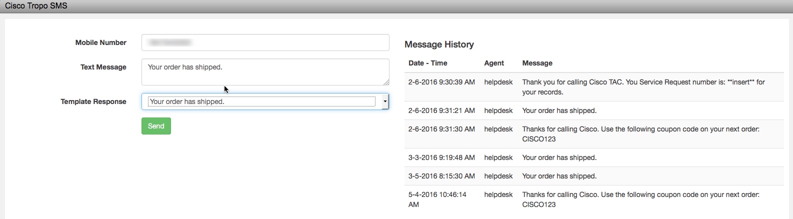 This gadget was built with Tropo as the SMS platform. Due to a change in Tropo's service offerings, This gadget will not work as is. I am leaving it online for people that would like to adapt it to work with other SMS platforms. For further details on the Tropo changes. Please read THIS post.