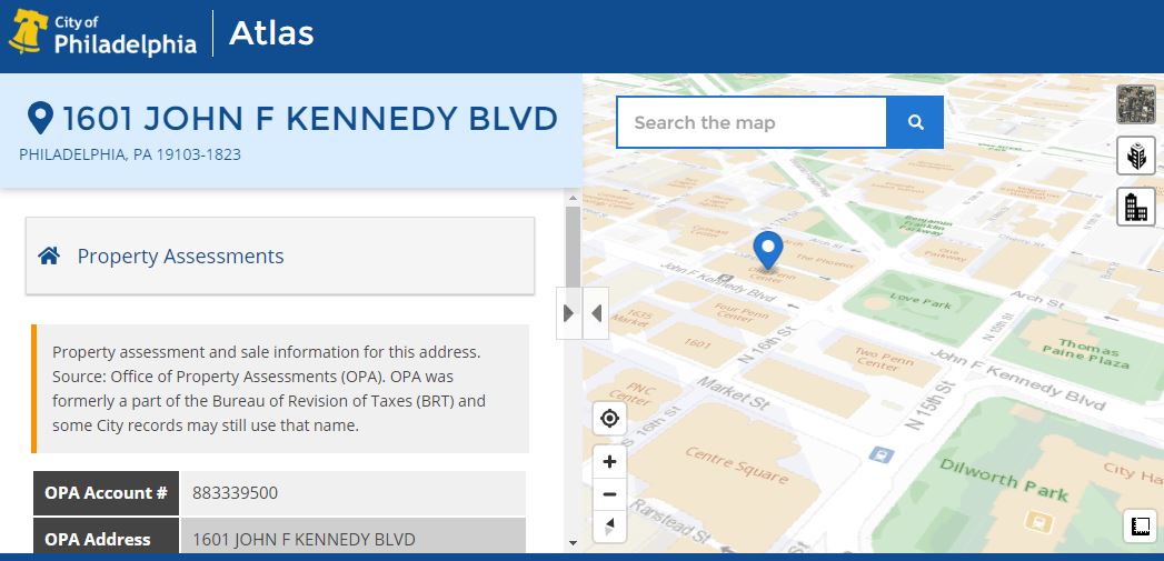 The map panel is an interactive map for 1) navigating to an address and 2) displaying features of interest such as the bounds of the property, nearby facilities, etc.