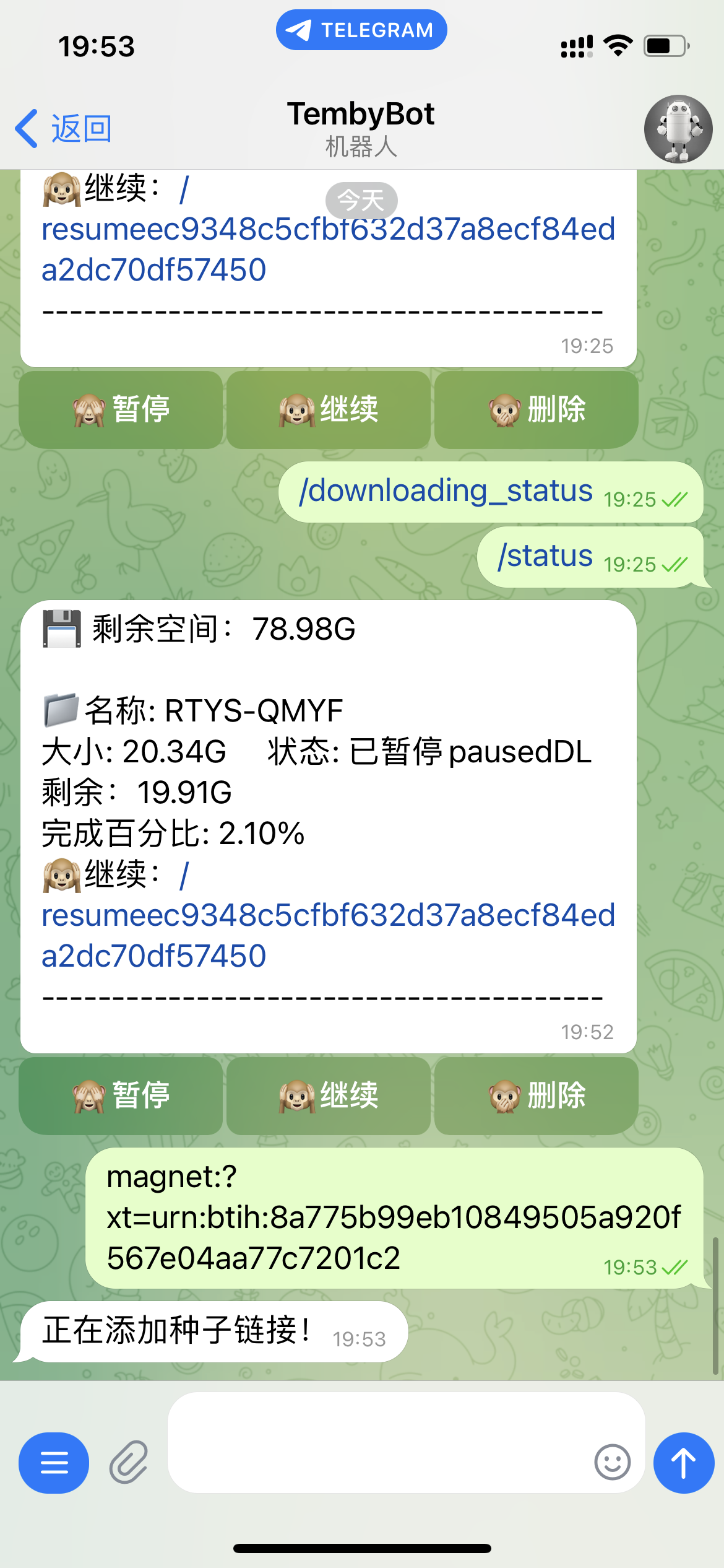 本程序连接telegrambot和qbittorrent,通过telegram聊天窗口控制查看qbittorrent情况,目前只能运用qbittorrent的主要功能。