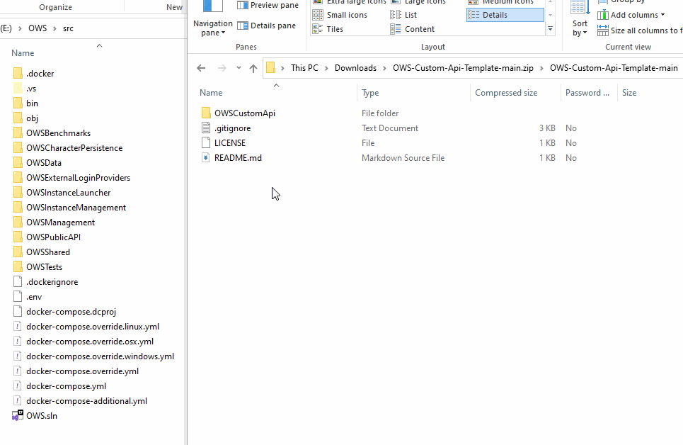 - Add the folder OWSCustomApi to the src folder inside OWS