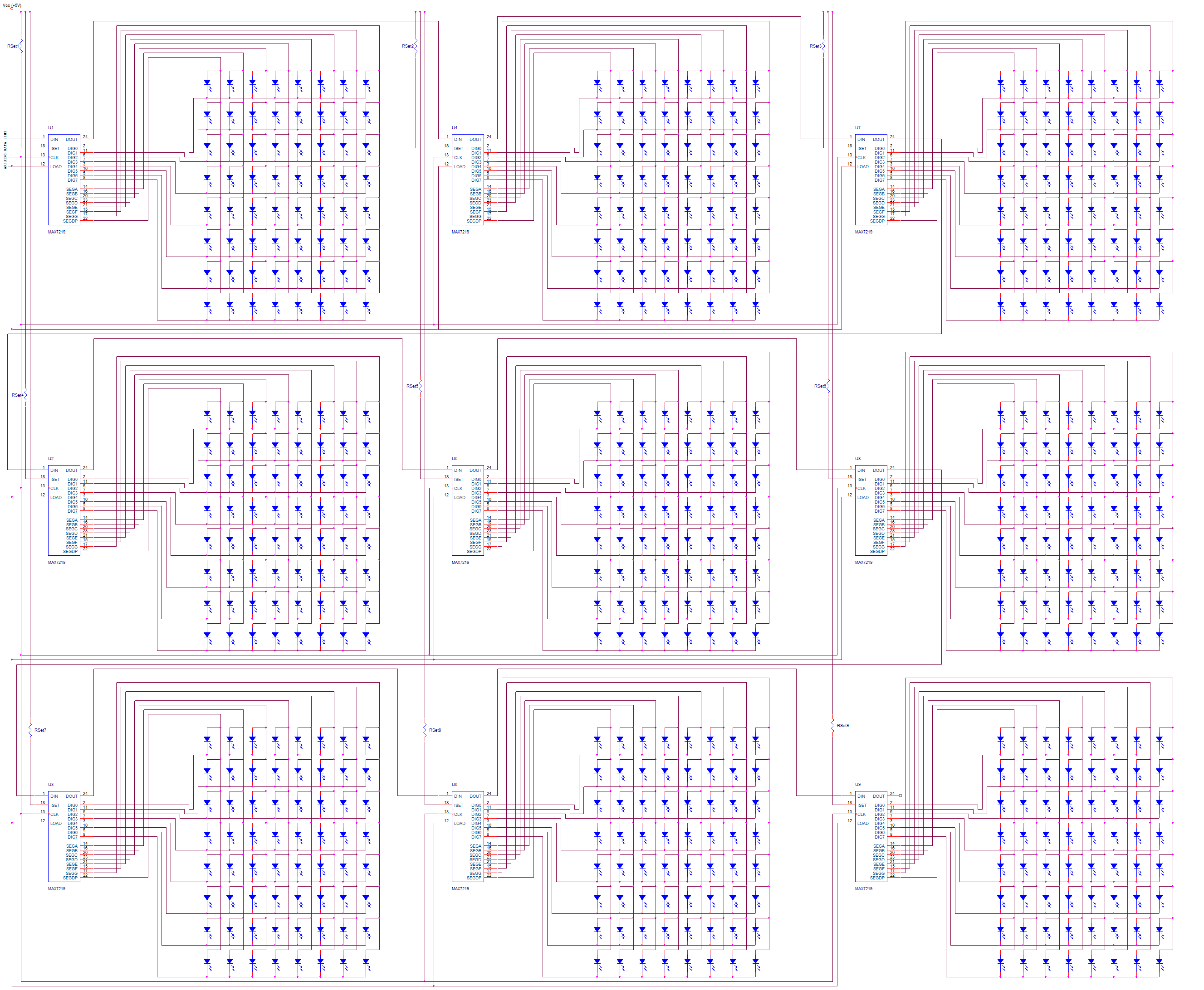 За момента схемата се състои от 3x3 LED матрици и 4x2 TCRT 5000 IR сензори. Бъдещо развитие може да бъде осъществено като се увеличи броят на матриците и респективно броят на сензорите. Пример 5х5 конфигурация на матриците придружена от 8 сензора разпределени на равно разстояние един от друг от всяка страна, на която има играч.