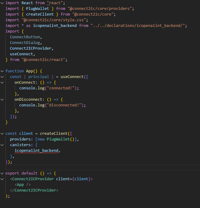 Type 'typeof import("src/declarations/icopenaiint_backend/index")' is not assignable to type '{ canisterId: string; idlFactory: InterfaceFactory; }'.