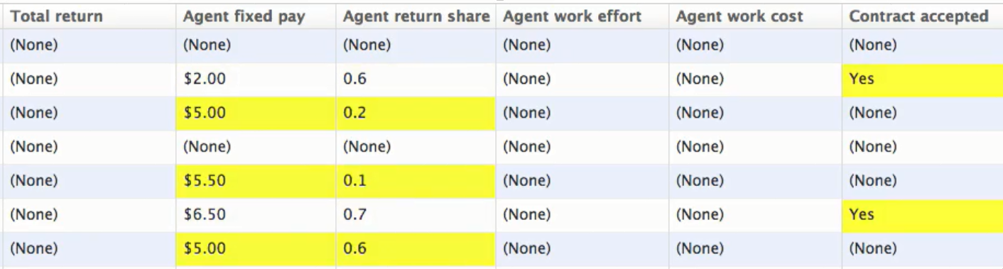 For example, let's say you are programming an ultimatum game, where in each two-person group, one player makes a monetary offer (say, 0-100 cents), and another player either rejects or accepts the offer. When you analyze your data, you will want your "Group" table to look something like this: