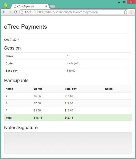 At the end of your session, you can open and print a page that lists all the participants and how much they should be paid.