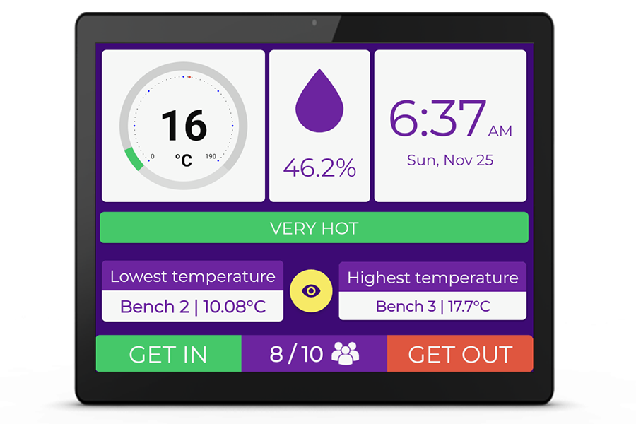 The project aims to provide a brand new sauna experience with both inside and outside interactive dashboards. We've been enjoying sauna many times, and we got the same concerns every time. How can I track my sauna sessions, get information about them or even set a timer? Also, how to know what's the best seat in the sauna depending on what kind of temperature I like?