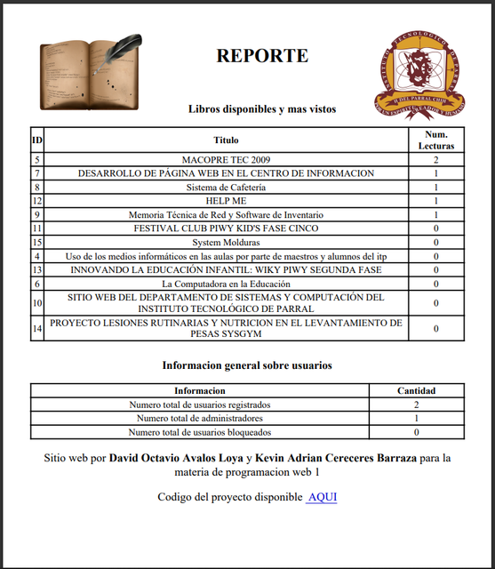 En esta aplicación se encuentran distintas tesis y residencias de alumnos del Instituto Tecnológico de Parral. Esta aplicación web fue creada como proyecto final de la materia de programación web #1.