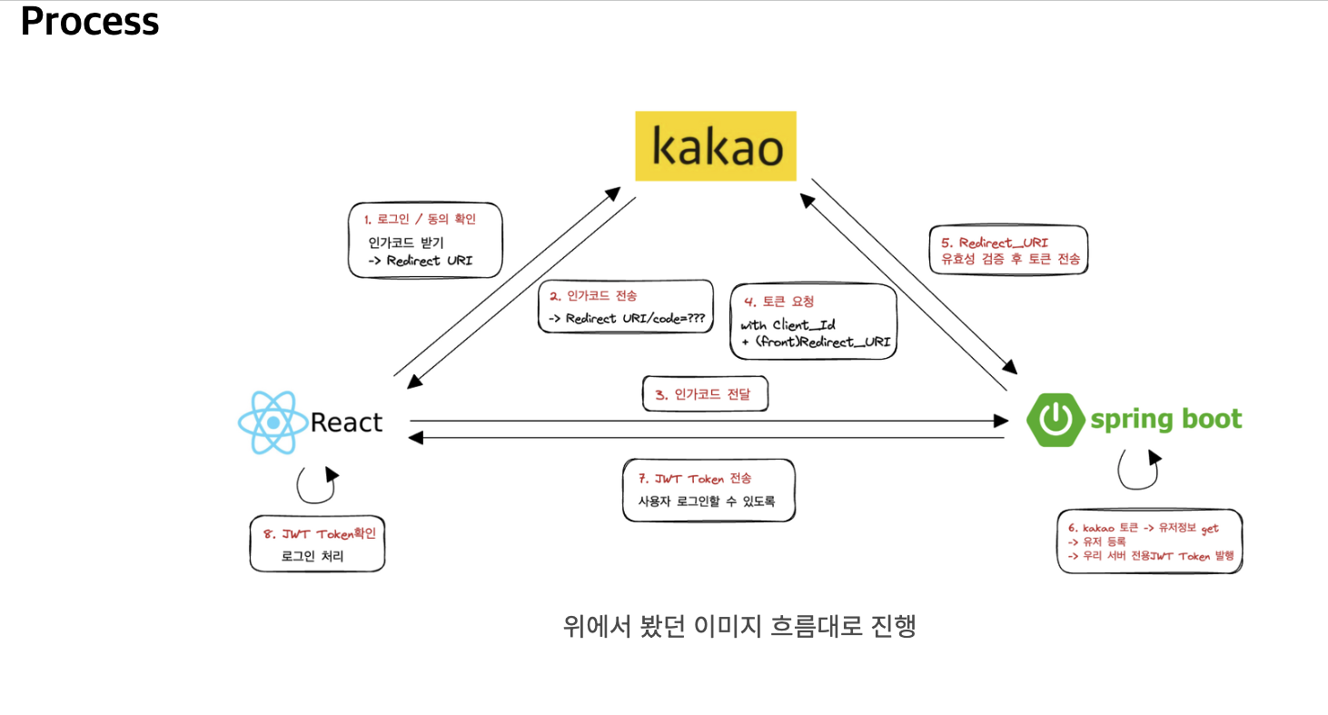 카카오 로그인 과정에서 아래의 4-5번 과정이 현재는 프론트에서 구현되어 있음.