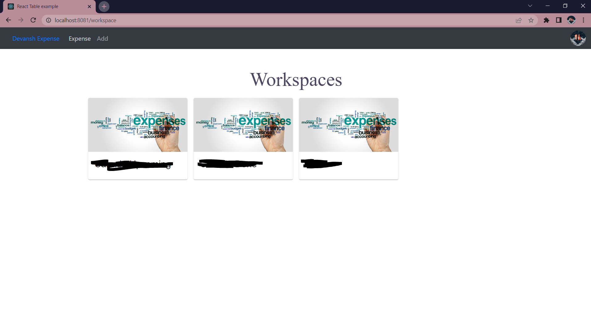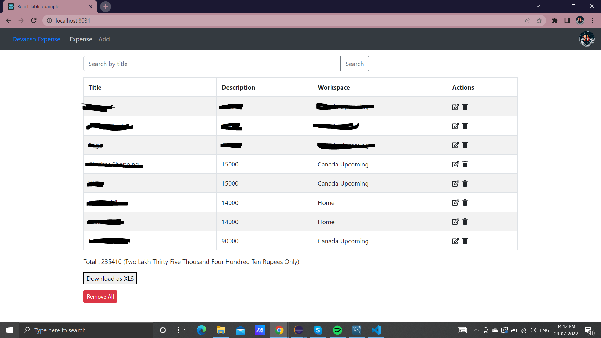 yarn install MYSQL database create table expense with following attributes id,description,workspace,title (can change description - to money)