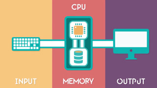 ** A computer is an electronic machine that processes information—in other words, an information processor: it takes in raw information (or data) at one end, stores it until it's ready to work on it, chews and crunches it for a bit, then spits out the results at the other end. All these processes have a name. Taking in information is called input, storing information is better known as memory (or storage), chewing information is also known as processing, and spitting out results is called output. **