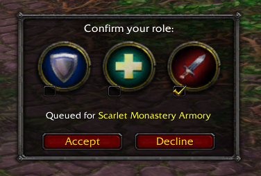 Once the leader clicks find more, a role check will be initiated and when the addon finds the missing roles you will be prompted with a Group Formed window.