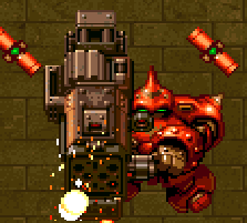 Heavy Armored Robot | 87 | 4,000 | Shoots 4 bullets evey time. Two aim at your left and two at your right. Appears in: Castle, Village and Jungle. |