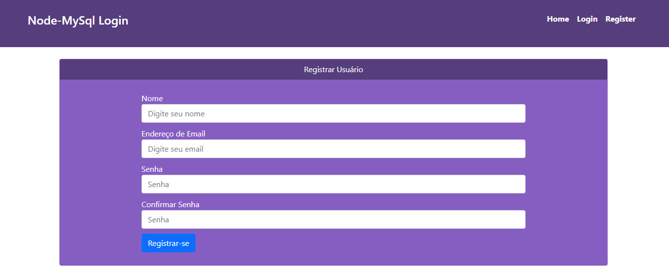 CURSO: Tecnologia em Análise e Desenvolvimento de Sistemas DISCIPLINA: Programação para Web Profa. Me. Janaine C. S. Arantes Prova 02 Fazer a seguinte aplicação em Node, com a utilização de Banco de Dados o MySql. DB MySQL Tela de Inicio tela de login Tela de Cadastro