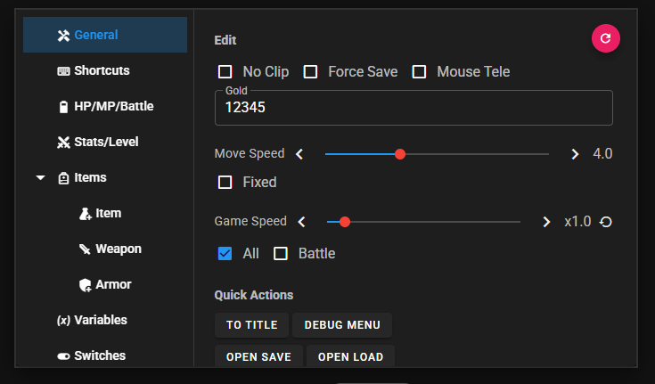 - Debug Access: Instant access to NW.js Console and RPG Maker Debug (F9) Menu.