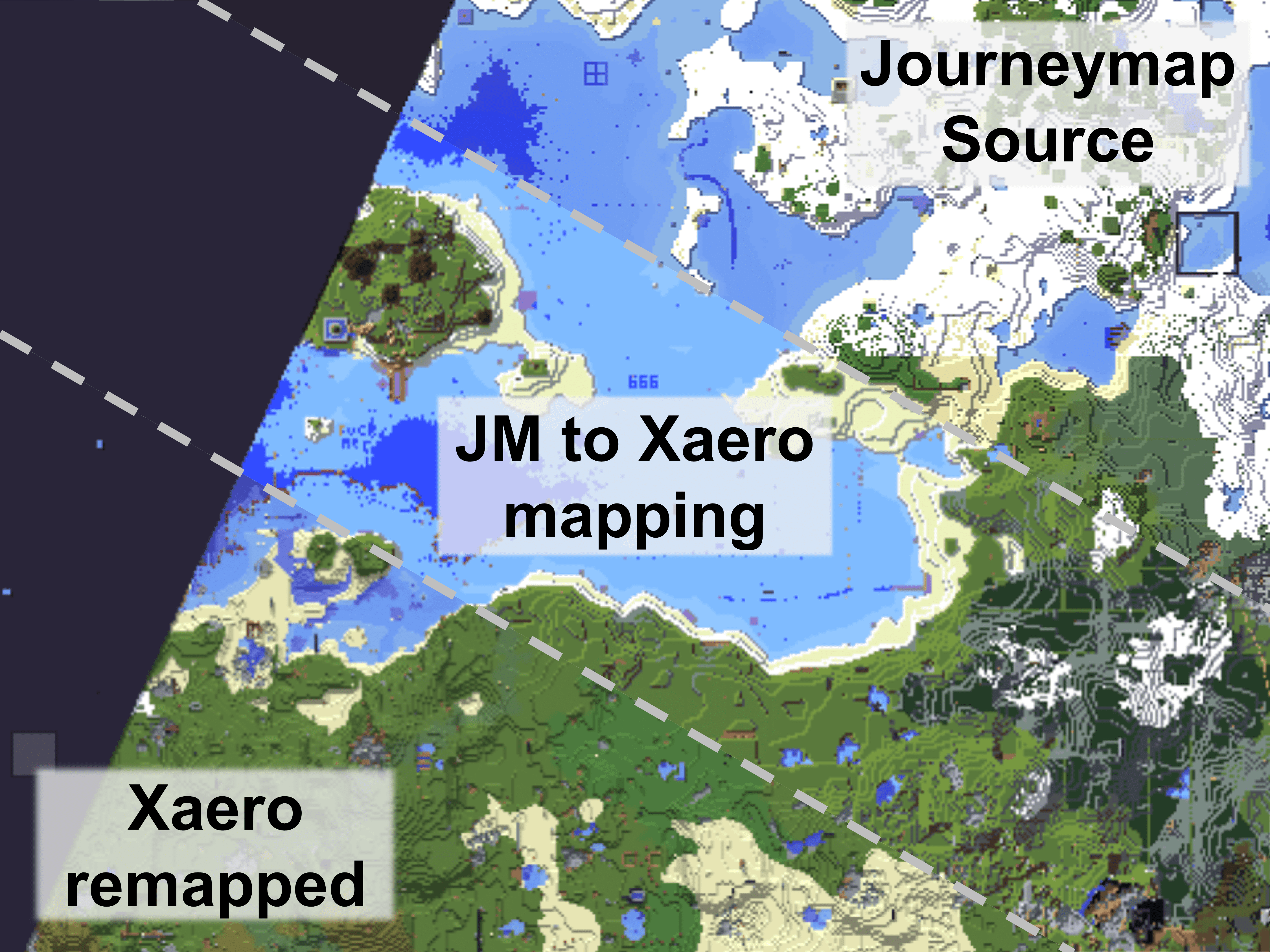 - Visual difference is significant, as Journeymap pixel colors are also affected by height level, shading, transparency, and biomes