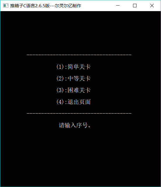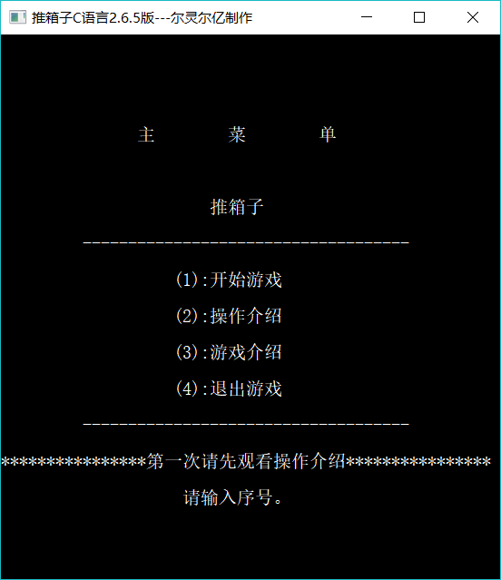 Sokoban 点这里下载qwq (因为这里是GitHub,可能要翻墙才行) Console Game Application Project Description(项目说明) 使用c语言编写的的控制台游戏程序 Run The Example (运行示例) Run Requirement(运行要求) 具有C/C++编译器 Last(最后) Author: LZ QQ: 2117610943 Emal: 2117610943@qq.com Programming capacity is limited, please understand OthersBlog