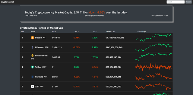 Crypto market is my take on displaying current prices and information for each cryptocurrency. The data is called from Coingecko’s API when the page loads and for future changes, I plan to make the data update with the market. The graph on the homepage is generated using Vuetify’s sparkline. The detailed graph is generated using Chart.js.