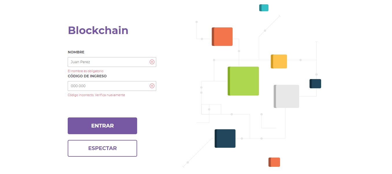 Hice pantalla login con manejo de errores tanto en usuario, como en código de ingreso. Ambos muestran error en caso de estar incompleto 1 o ambos.