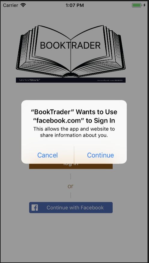 In the Login View Controller, there are certain times when the Login manager returns a Cancelled state for some reason I don't understand, as if the user selected the Cancel option in the prompt to continue the sign in process through facebook (I have included an attachment of the prompt) The login works and I can retrieve the information from the user but when the error occurs, the prompt disappears, thus I have to click on the login button again to continue the process.
