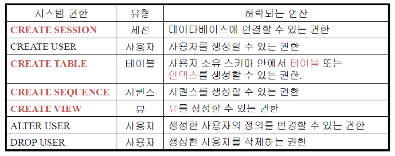 - 데이터베이스를 관리하는 데 필요한 시스템 명령어를 사용하기 위해서는 시스템 특권을 부여받아야 한다.