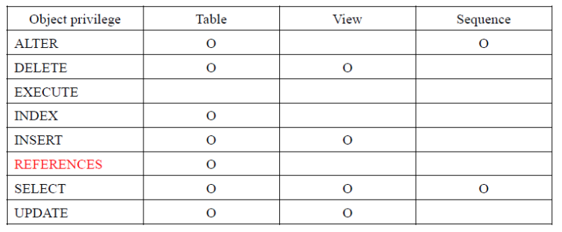 - 스키마 객체인 테이블, 뷰, 시퀀스, 동의어 등에 접근하는 것을 제어하는 권한이다