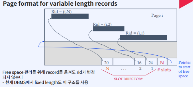 - DBMS에서 가장 낮은 layer에서 disk의 space를 관리