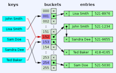 - Hash function의 결과에 bucket수로 mod 연산하여 위치 결정