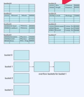 - Overflow chaining - linked list형태로 같은 hash key를 갖는 bucket을 연결한다