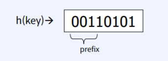 - Hashing function의 결과를 binary로 표현하여 bucket의 할당에 binary의 prefix을 사용