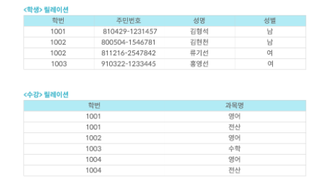 -> [수강] 릴레이션의 학번에는 [학생] 릴레이션의 학번에 없는 값은 입력할 수 없다