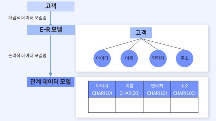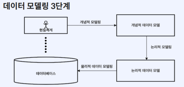 - 현실 세계에 존재하는 데이터를 컴퓨터 세계의 데이터베이스로 옮기는 과정