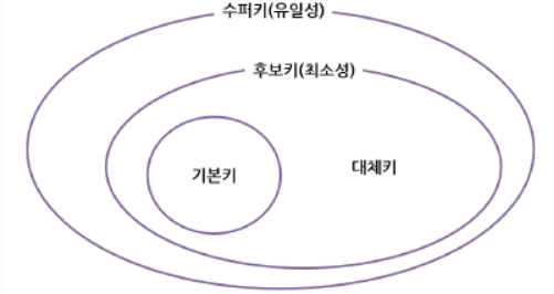 - 최소성 : 유일성을 만족하는 한도 내에서 최소한의 컬럼(하나 이상)으로 구성되어야 한다