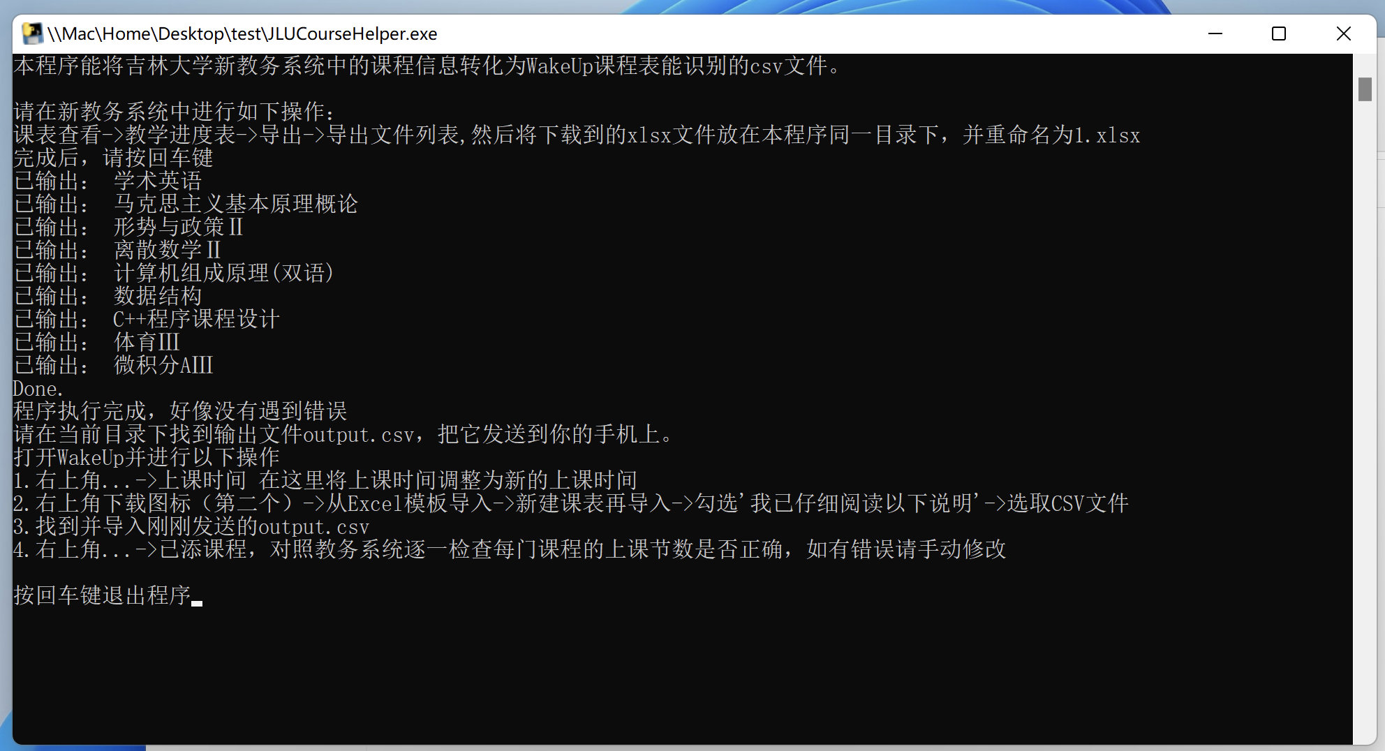 JLU近期更换了新的教务系统,WakeUp课程表的自动导入教务功能随之失效。本程序为WakeUp课程表app更新前的一个过渡。