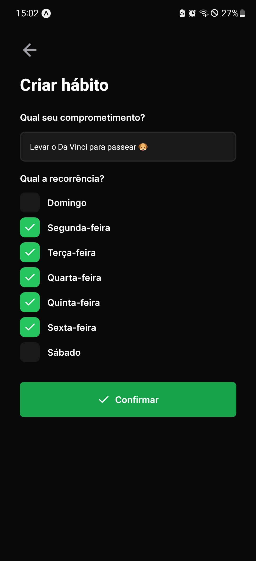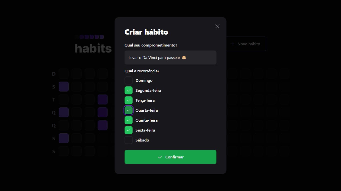 O objetivo deste projeto é desenvolver uma aplicação web e mobile que permita aos usuários criar e gerenciar seus hábitos em uma rotina semanal.