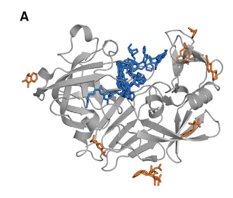 Below is an illustration of how ligand hits and secondary structure rendering can look like: