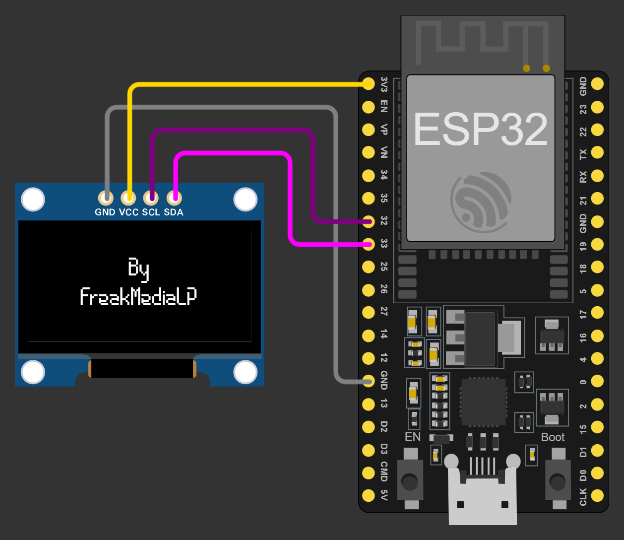 VCCfrom Screen with3V3on ESP32- Connect