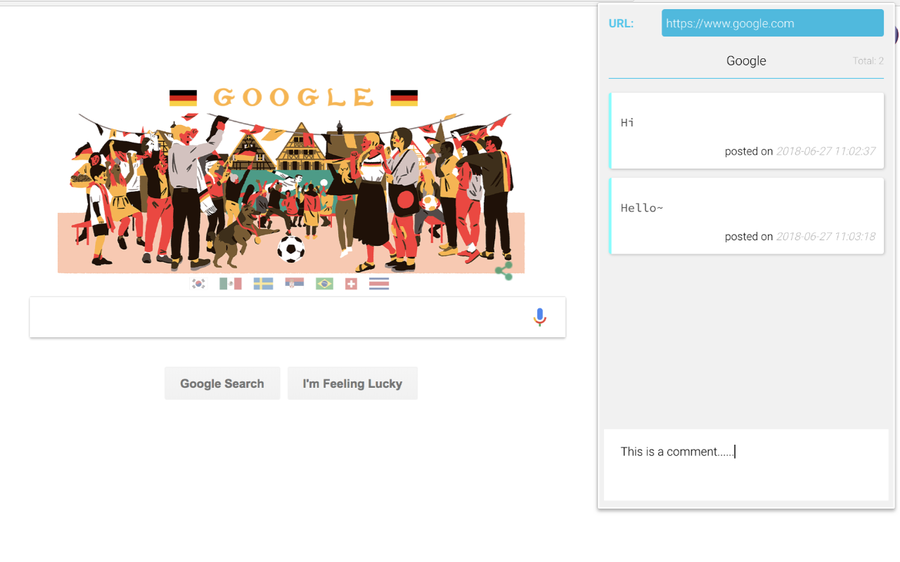 A chrome extension makes users post their comments on the web. There's a chatroom for each web domain.