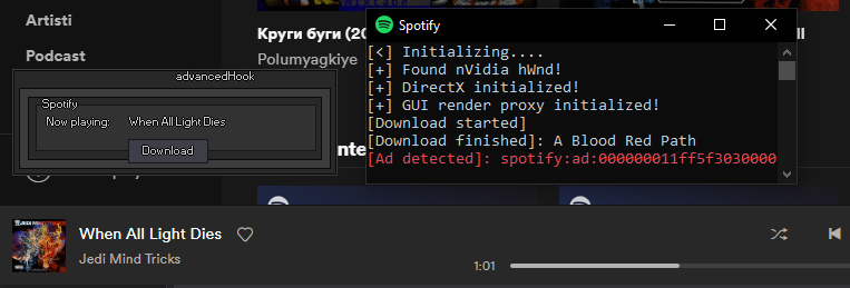 A Win32 module that once injected into Spotify, can download songs directly from Spotify servers regardless whether or not you're listening to them.